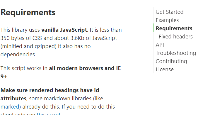 もし、JavaScriptのライブラリを利用する場合は「Tocbot」がお薦めです。
