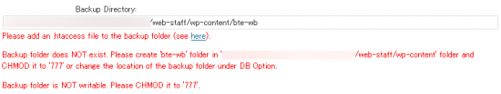 バックアップディレクトリについて下記のようなエラーが表示されていると思います。